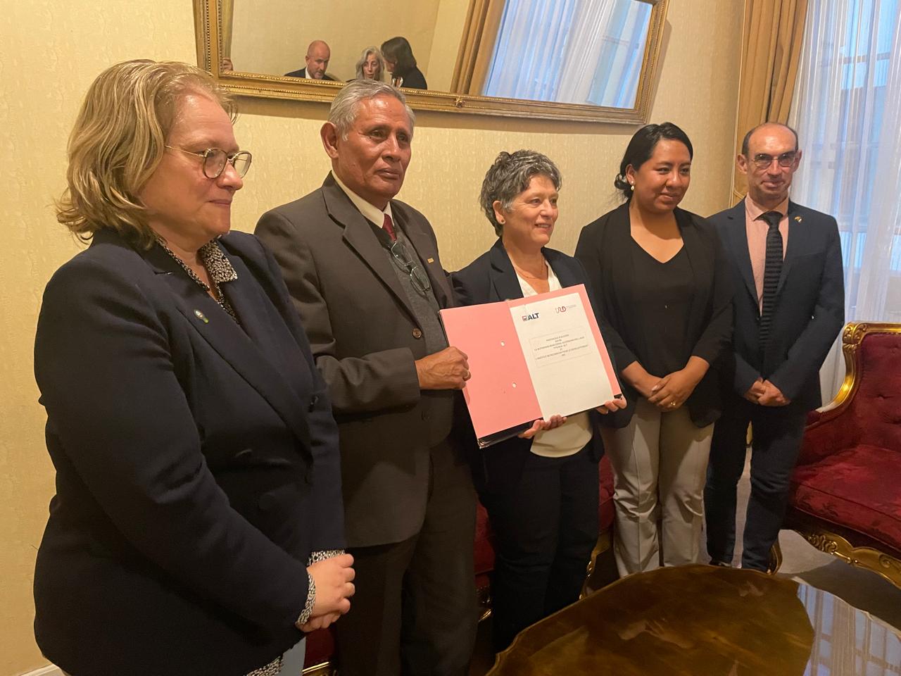 Dicho acto, se llevó a cabo en presencia de la Señora Helen Ross (Embajadora de Francia en Bolivia), el Dr. Marc Poully (Representante del IRD en Bolivia), la Embajadora Marissa Castro Magnani (Directora General de Límites, Fronteras y Aguas Internacionales Transfronterizas del Ministerio de Relaciones Exteriores del Estado Plurinacional de Bolivia).