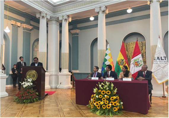 (La Paz, 29 de mayo de 2024).- La Autoridad Binacional Autónoma del Sistema Hídrico Lago Titicaca, Río Desaguadero, Lago Poopó y Lago Salar de Coipasa (ALT), organismo público de derecho internacional, creada en 1992 mediante Notas Reversales, ratificadas mediante Ley 1972 del Congreso de Bolivia, y Resolución Legislativa 26873 del Congreso de la República del Perú, no obstante, entró en funciones el 29 de mayo de 1996, con sede en la ciudad de La Paz, Bolivia. En ese contexto, el Lic. Juan Ocola Salazar, presidente ejecutivo, organizó un acto conmemorativo por los 28 años de vida institucional, el cual se llevó a cabo el salón Tiwanaku del Ministerio de Relaciones Exteriores del Estado Plurinacional de Bolivia.