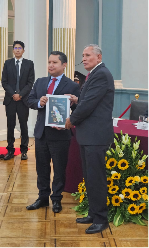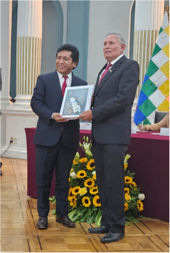Finalmente hizo entrega de la Estrategia binacional para la conservación, protección y recuperación de los tolares en el Sistema TDPS al Ministro consejero Carlos Montoya, al Vicecanciller Elmer Catarina y al Ing. Abdón Flores Quisbert, Secretario Departamental de Planificación y Desarrollo del Gobierno Autónomo Departamental de Oruro (GADOR); y de manos del GADOR, el presidente ejecutivo de la ALT, recibió un ejemplar del Plan Territorial de Desarrollo Integral para Vivir Bien del Departamento de Oruro PTDI-2021-2025, el cual fue desarrollado con el apoyo de la ALT.
