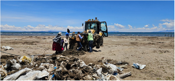 (Puno, 8 de noviembre del 2024).- El 8 de noviembre la Autoridad Binacional Autónoma del Lago Titicaca (ALT) con la participación del Proyecto Living Lakes (Proyecto financiado por el Gobierno Alemán, y ejecutado por la Global Nature Fund y la ALT), en coordinación con la Municipalidad Distrital de Pilcuyo, realizó la primera campaña de limpieza de la basura dejada por criadores de truchas en 7 km de playa del Lago Titicaca, aledaños al centro poblado de Cachipucara del distrito de Pilcuyo, en la región Puno.