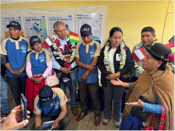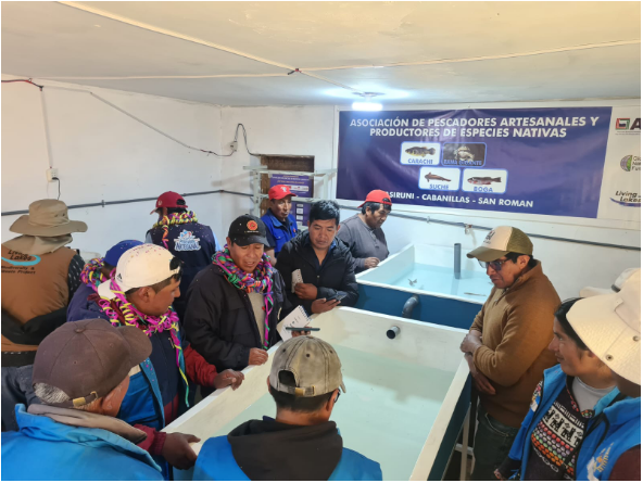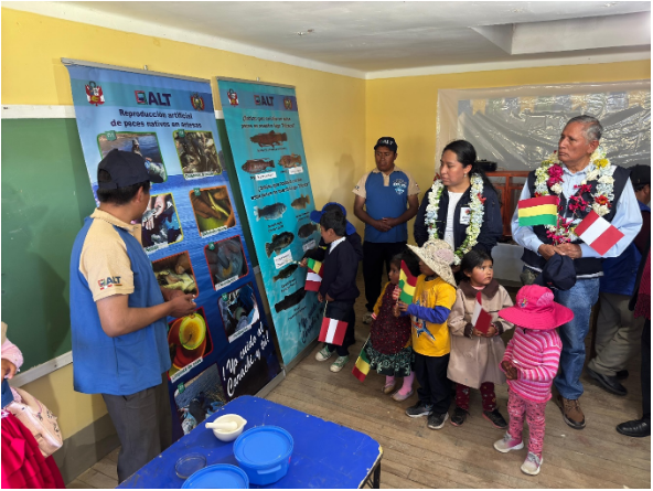 El Presidente ejecutivo de la ALT, informó que esta actividad es de carácter binacional, que en el lado peruano, se cuenta con cuatro laboratorios; no obstante el uso de estos módulos móviles también están siendo promovidos a nivel de las comunidades pesqueras peruanas. Así mismo señaló que se está realizando un estudio con la finalidad de identificar en la cuenca del Titicaca (sector boliviano) lagunas que puedan ser consideradas como zona de reserva de especies nativas. Mencionó que en el lado peruano existen dos reservas: laguna Saracocha y Lago Umayo, donde en la primera de ellas se ha logrado conservar la boga y el suche (especies consideradas extintas comercialmente), y que el 4 de diciembre con el apoyo del Proyecto Biodiversidad y Clima de los Lagos Vivos (Living Lakes) financiado por el gobierno alemán y ejecutado por la ALT y la Global Nature Fund (GNF), se inauguró un laboratorio en la Comunidad de Asiruni localizada en las inmediaciones de la laguna Saracocha (4100 msnm), destinado a la reproducción artificial de boga (Orestias pentlandii) y suche (Trichomycterus rivulatus) y otras especies del género orestias, con una capacidad de medio millón de alevines por campaña, el cual será operado por la Asociación de Pescadores Artesanales y Productores de Especies Nativas de Asiruni.