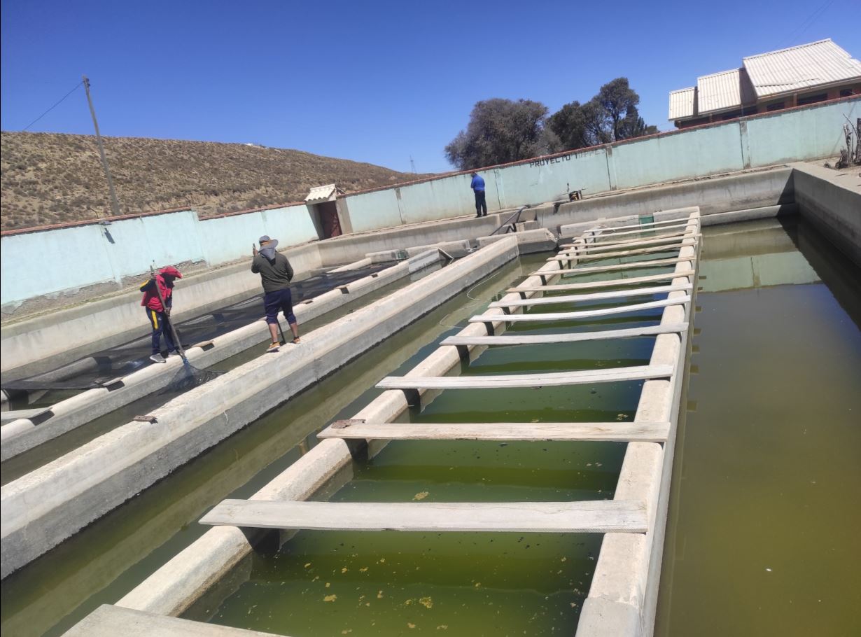 Y con la finalidad de complementar la experiencias de intercambio, se realizó una visita técnica al Laboratorio piscícola de la comunidad de Paria, Oruro, donde los pasantes apreciaron la experiencia que viene trabajando el proyecto de preservación y monitoreo de especies ictícolas en lagos y lagunas de 11 municipios en la cuenca del Poopó y Uru Uru, en la producción de alevinos de carachi y pejerrey.
